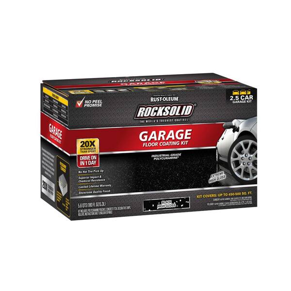 Rust Oleum Rocksolid 180 Oz Black Polycuramine 2 5 Car Garage Floor Kit 365196 The Home Depot